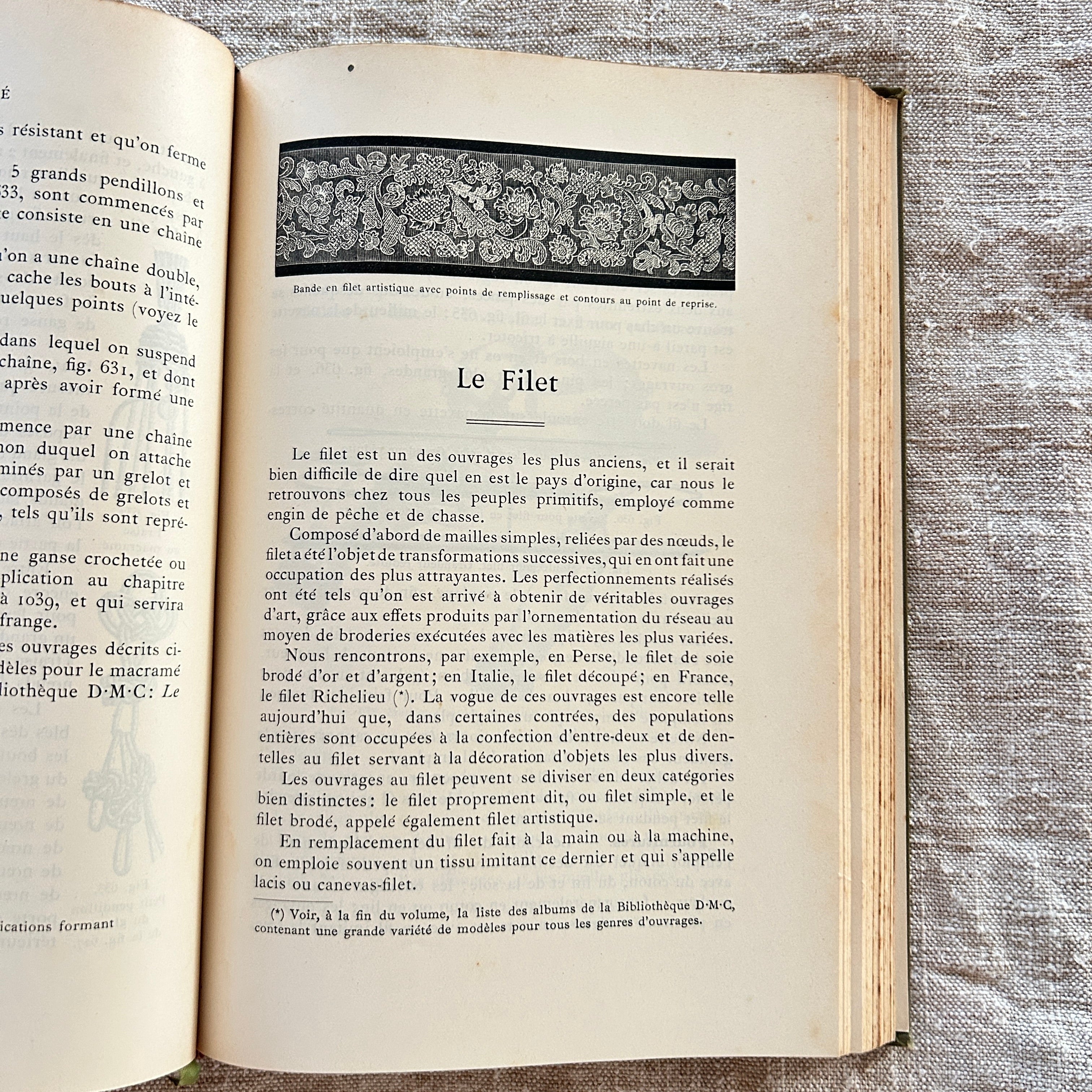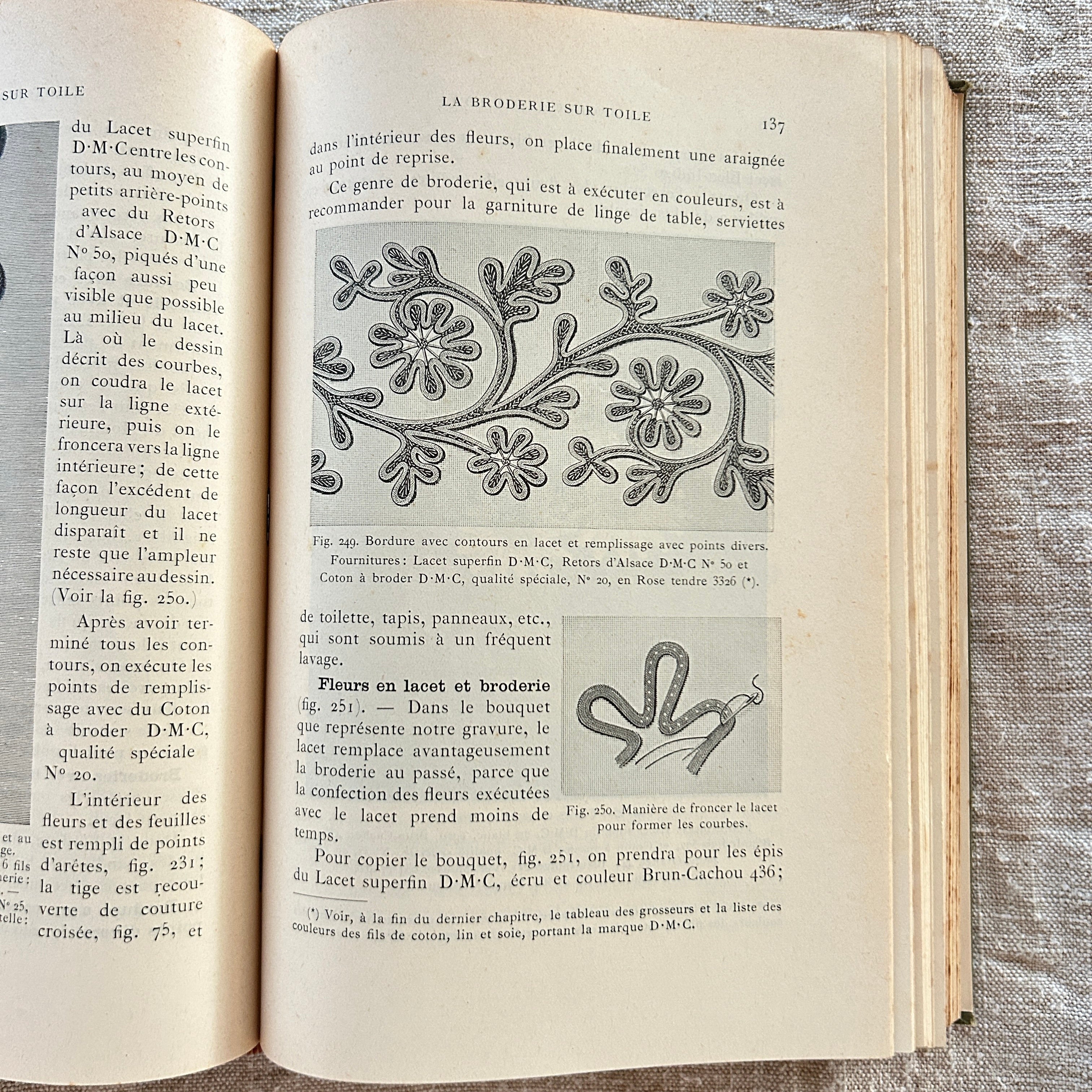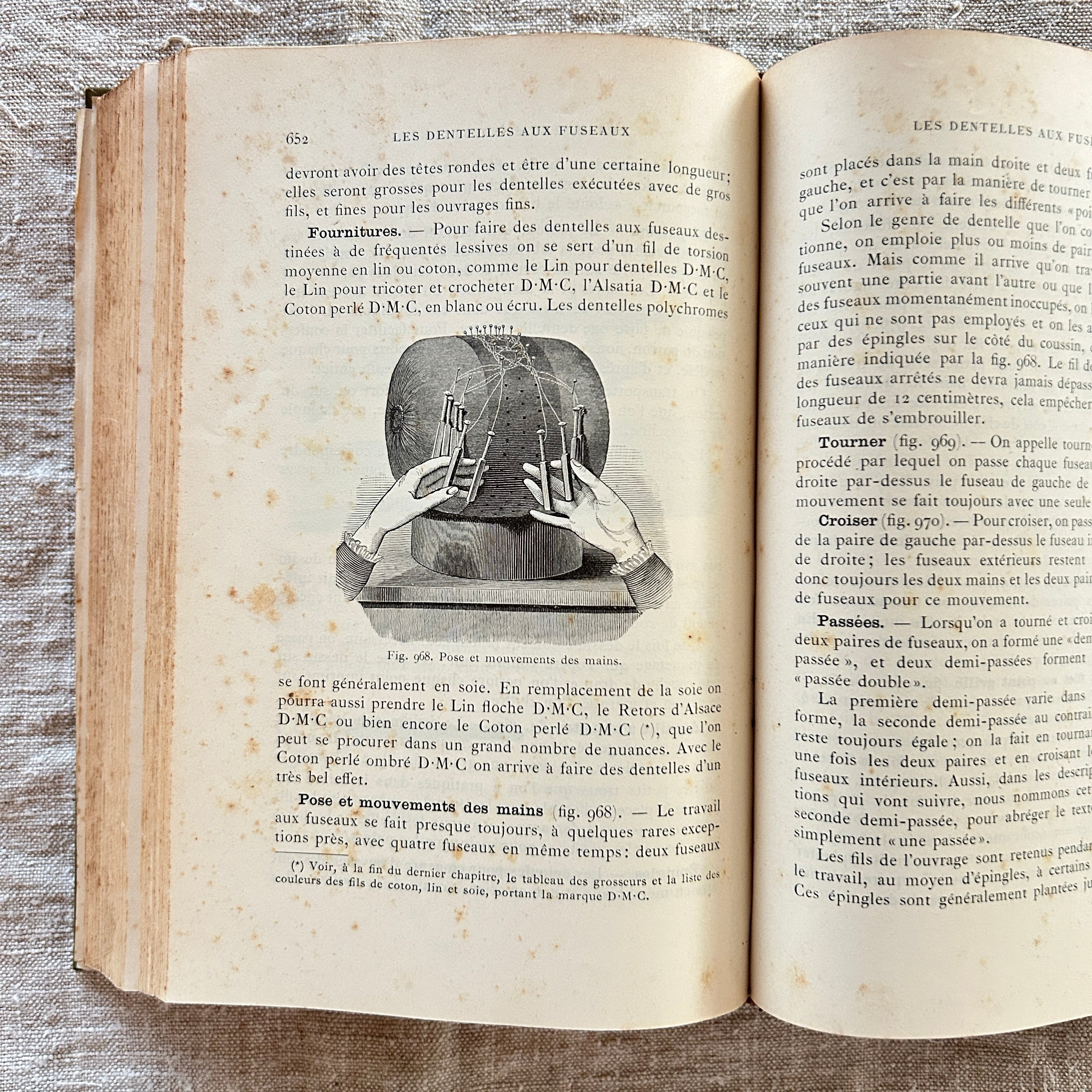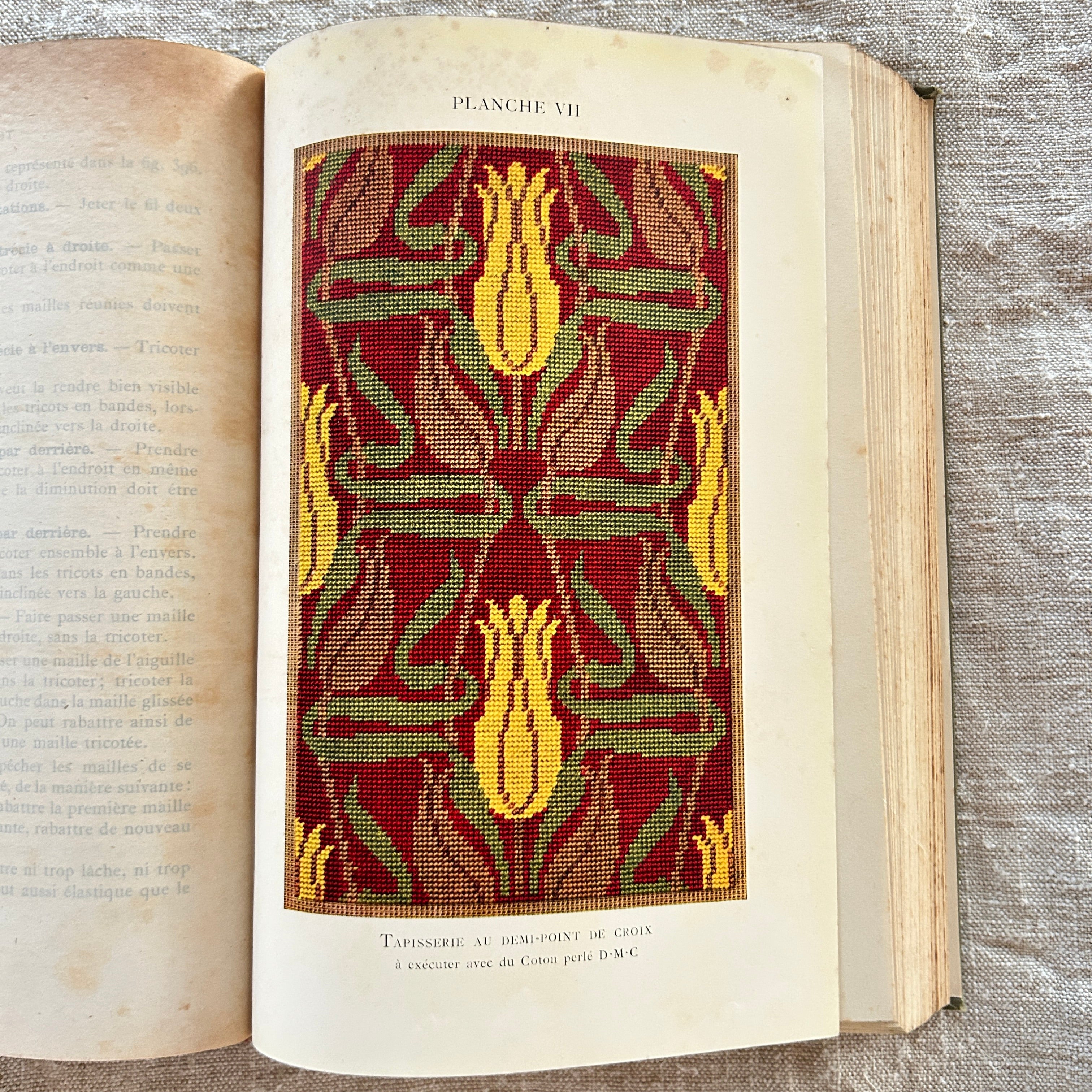 A treasured artifact of 19th-century domestic arts, this vintage edition of Encyclopédie des Ouvrages de Dames is a comprehensive and beautifully detailed guide to traditional needlework, authored by the renowned Thérèse de Dillmont. Originally published in the late 1800s by the famed Dollfus-Mieg & Cie (DMC), the book became an essential reference for women across Europe and remains a beloved classic among textile historians and embroidery enthusiasts.