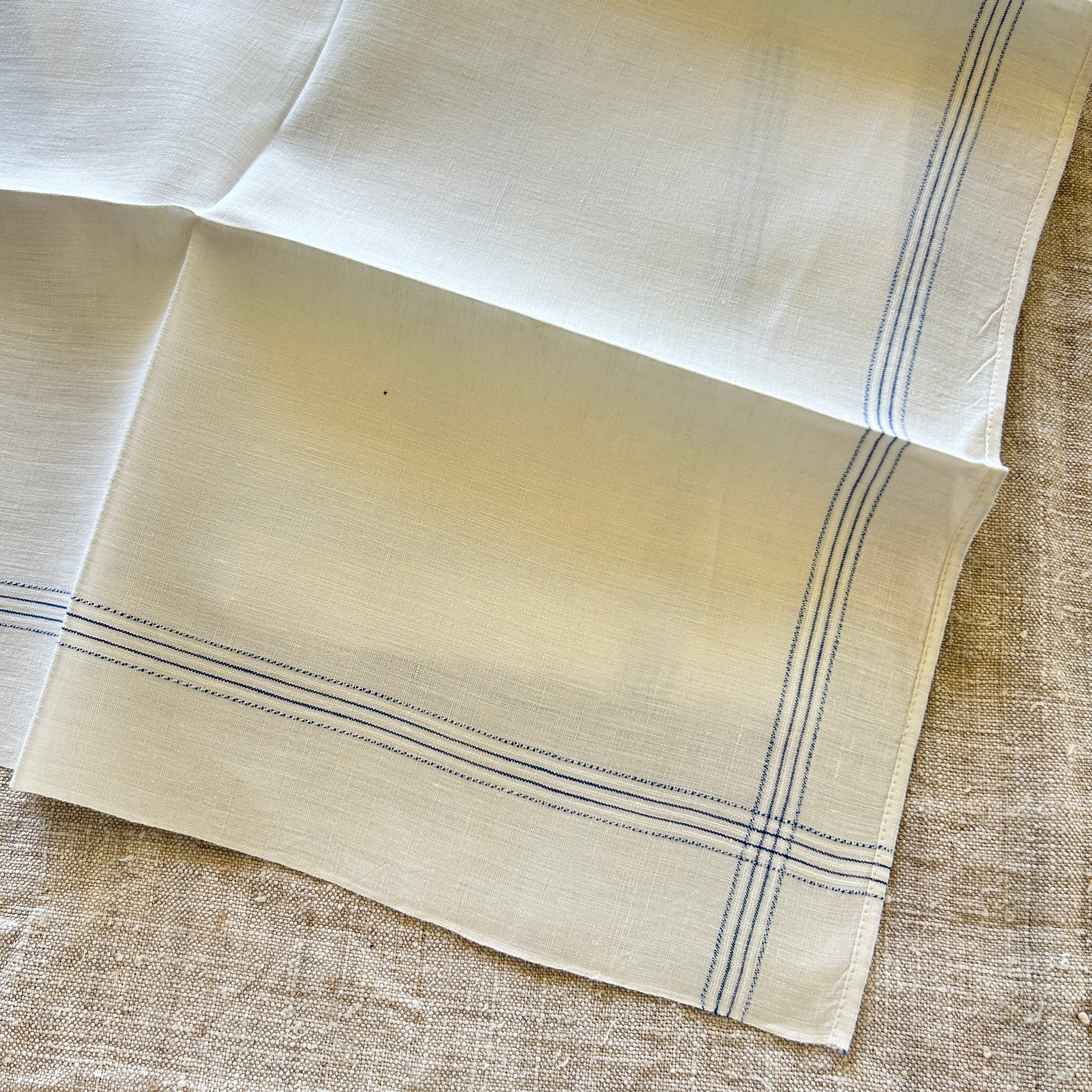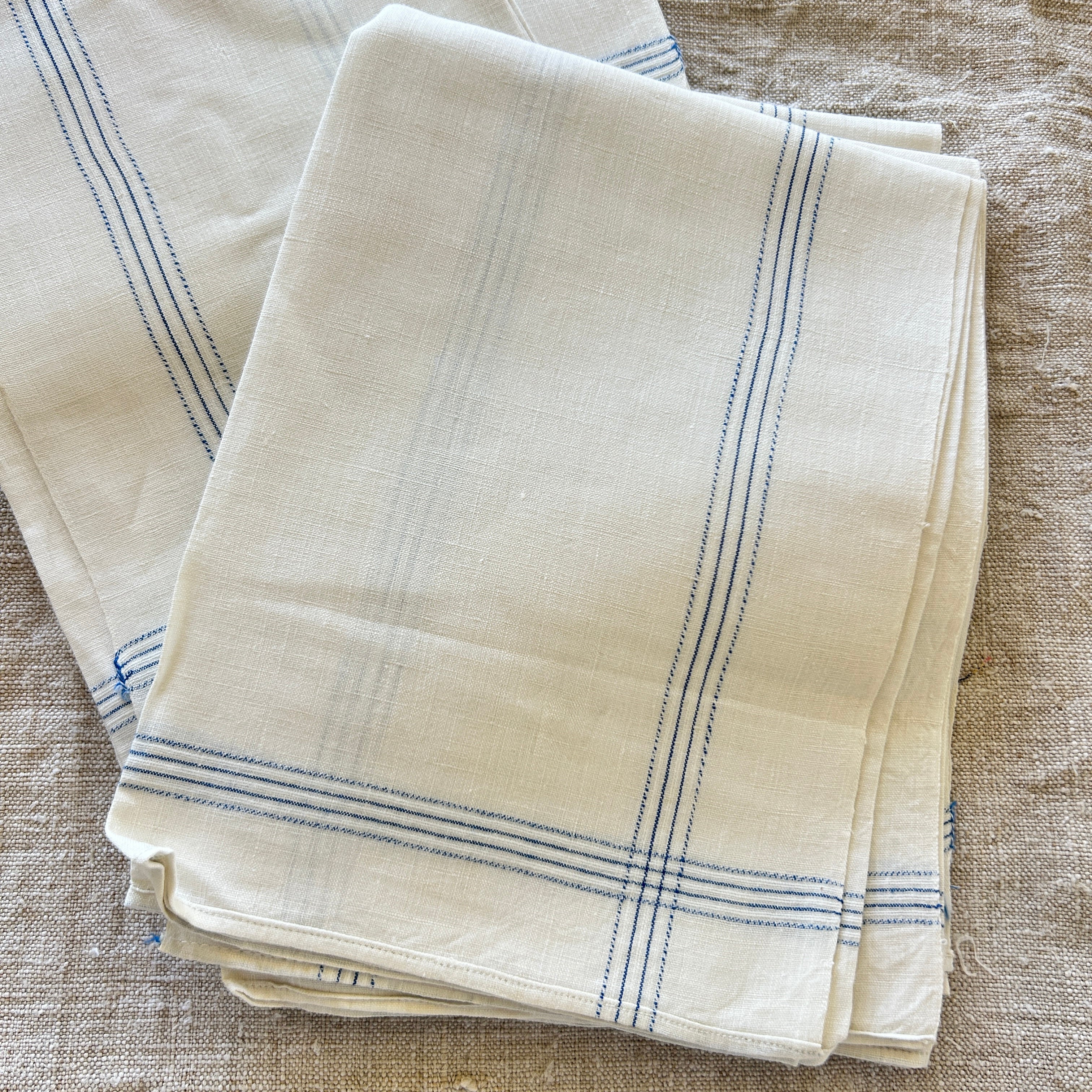 Sweet, linen handkerchiefs with a woven blue stripe, found in France at the Broderie Brocante in Monesties. These make a great base for a stitching project or monogram your favorite initials and use as is!
