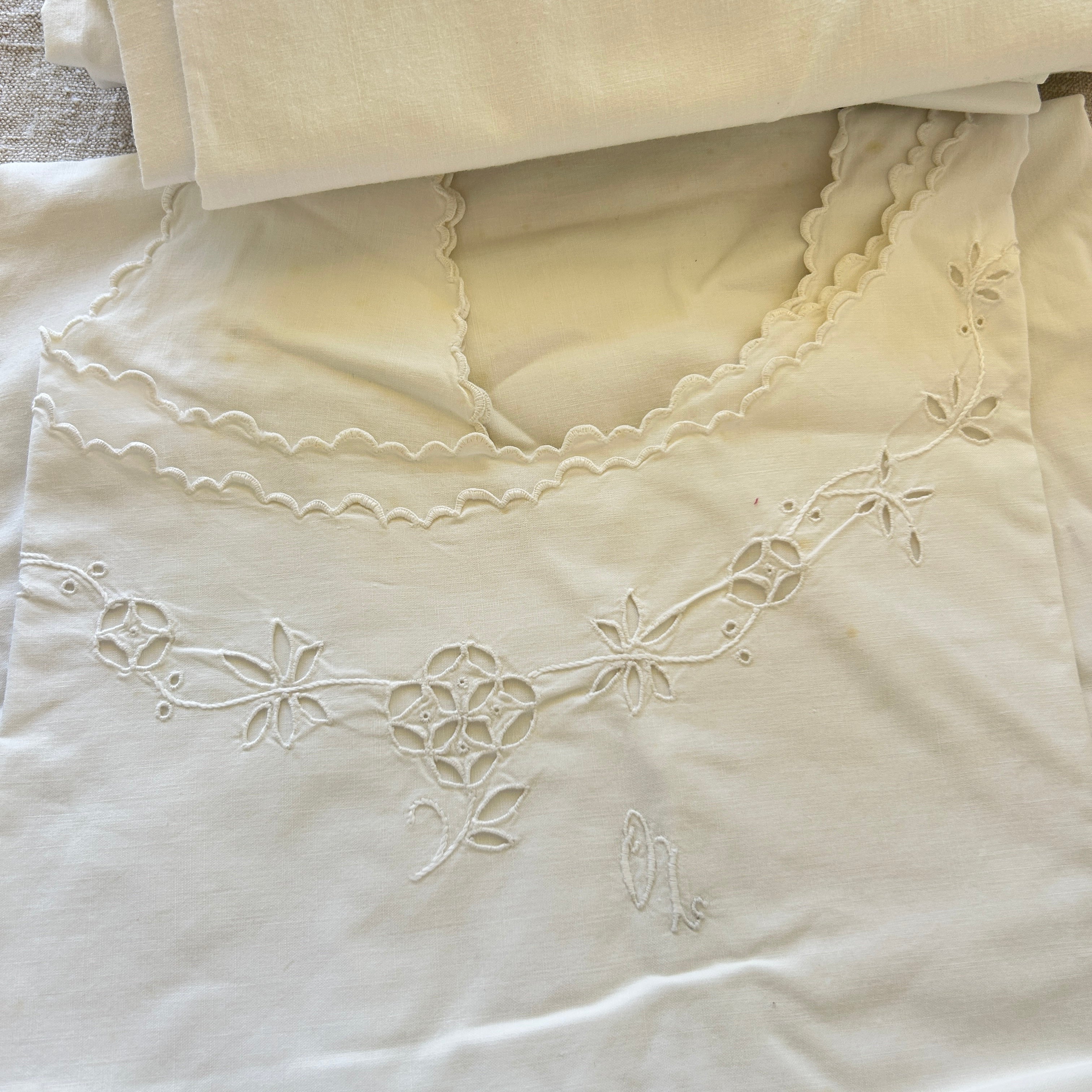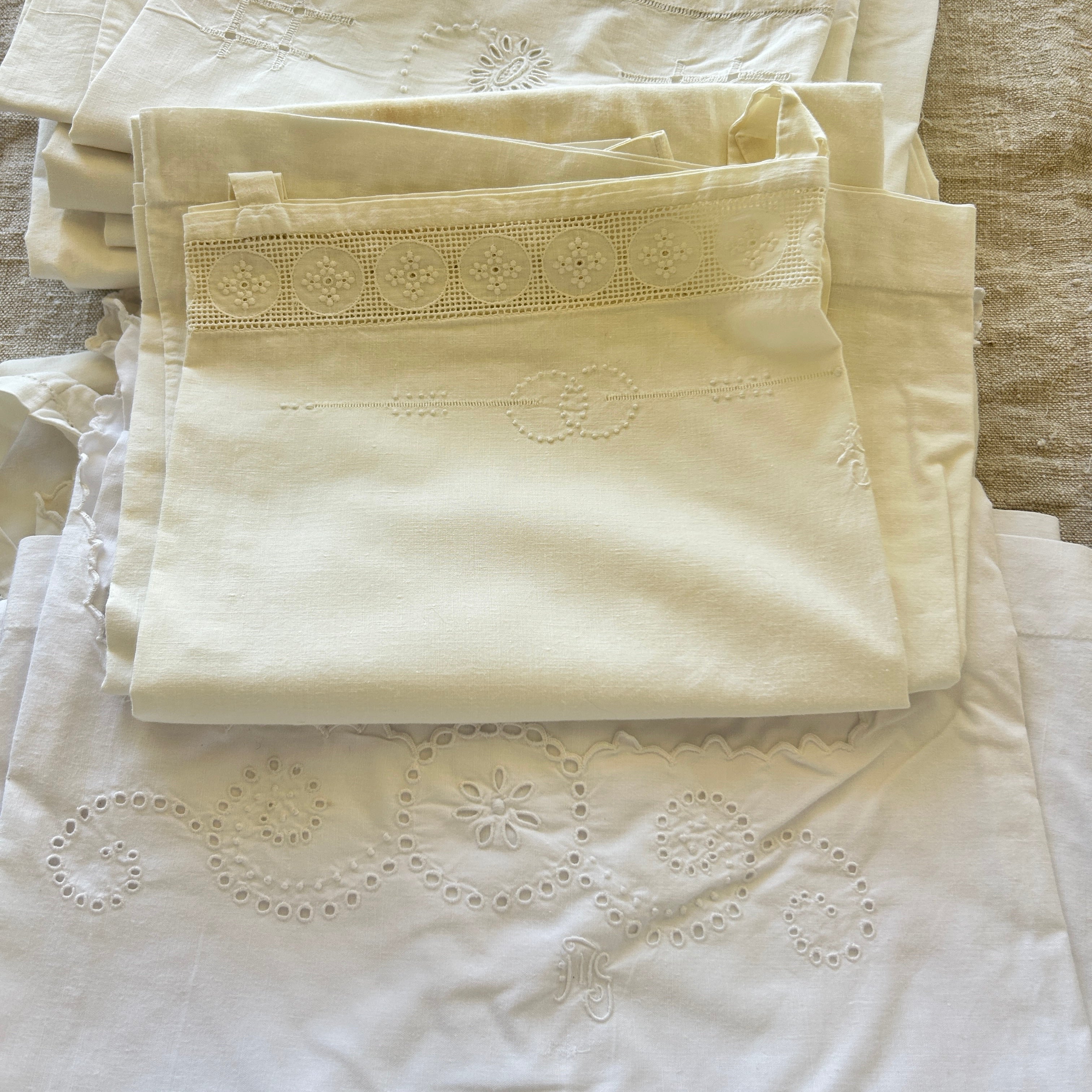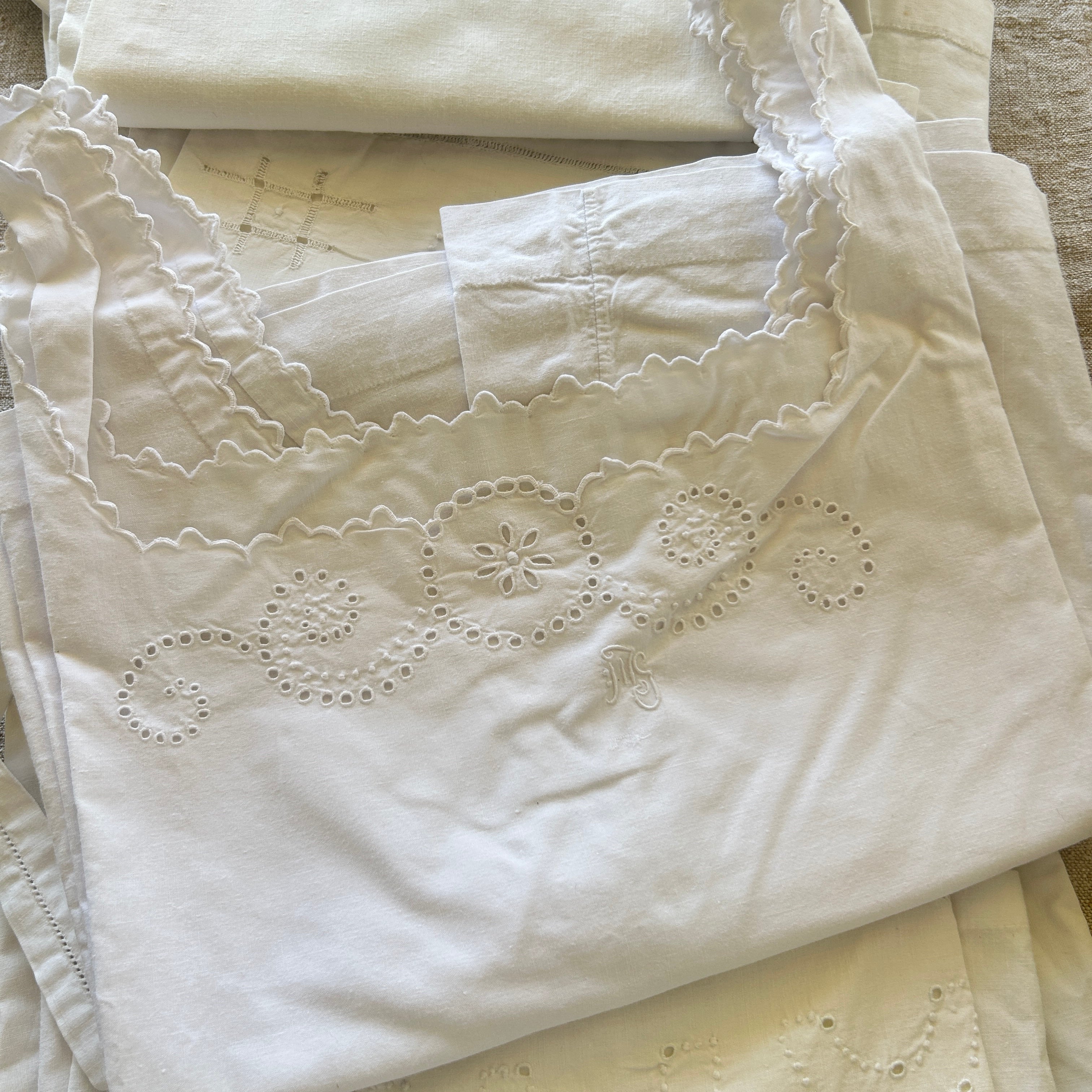 French cotton chemises - in fairly good condition. Each piece is adorned with hand-sewn details. These chemises could be gently washed, pressed and worn as is - or they could be cut up and used for the sturdy cotton fabric. A piece of French textile history - to be worn or used up.