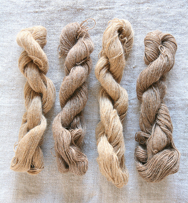 Found at the Toadlena Trading Post in New Mexico, owned by Mark Winters, this beautiful, vintage mohair skein is what Navajo weavers have used to weave their rugs for years. Two subtle shades available.