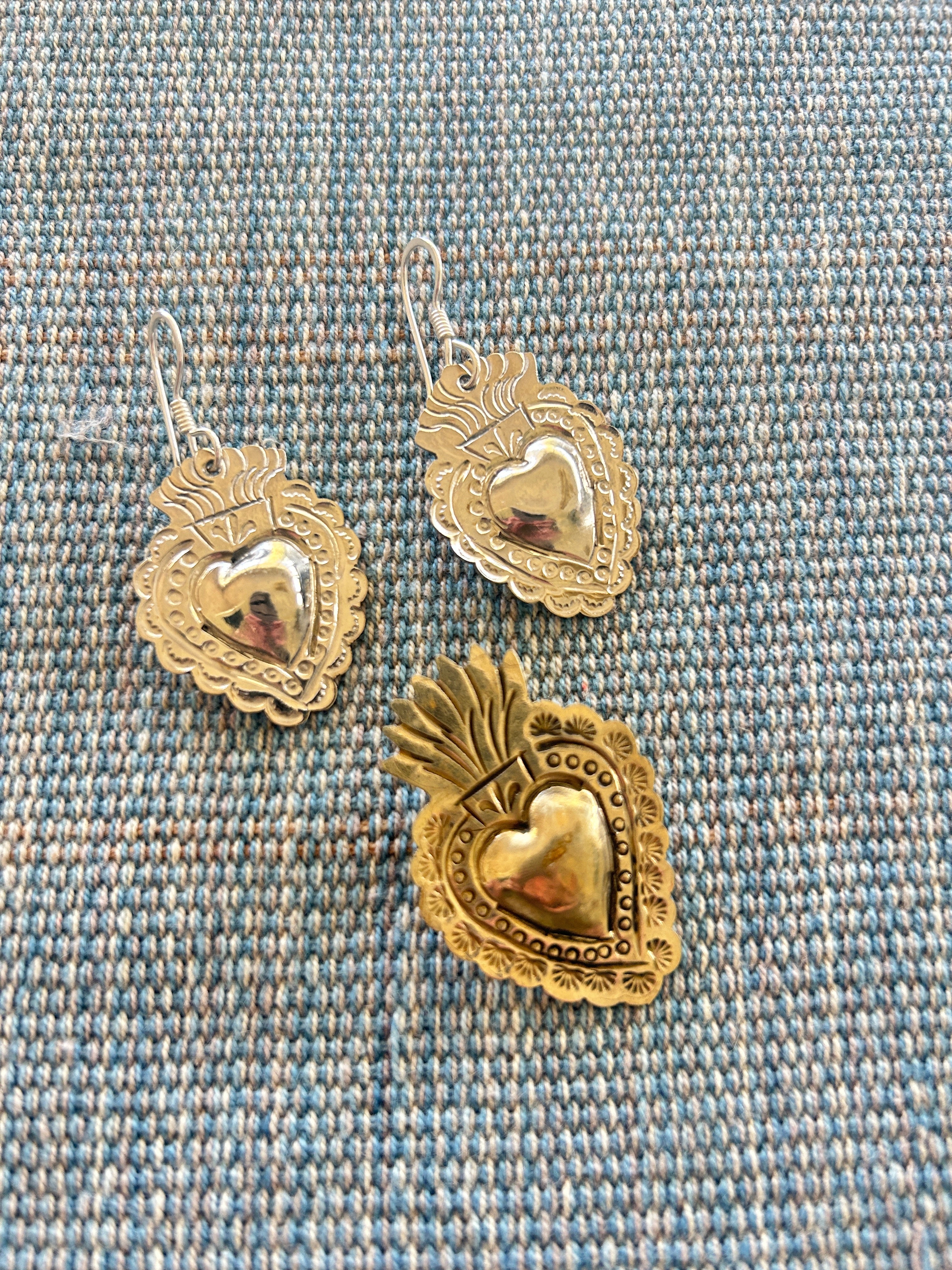 Beautiful milagro hearts charms made out of alpaca silver. These decorative and symbolic charms are part of a tradition of Mexican folk art, where they represent miracles, good luck, protection, and gratitude, and are often in a "sacred heart" style. They can be used as wall decor, or as talismans.