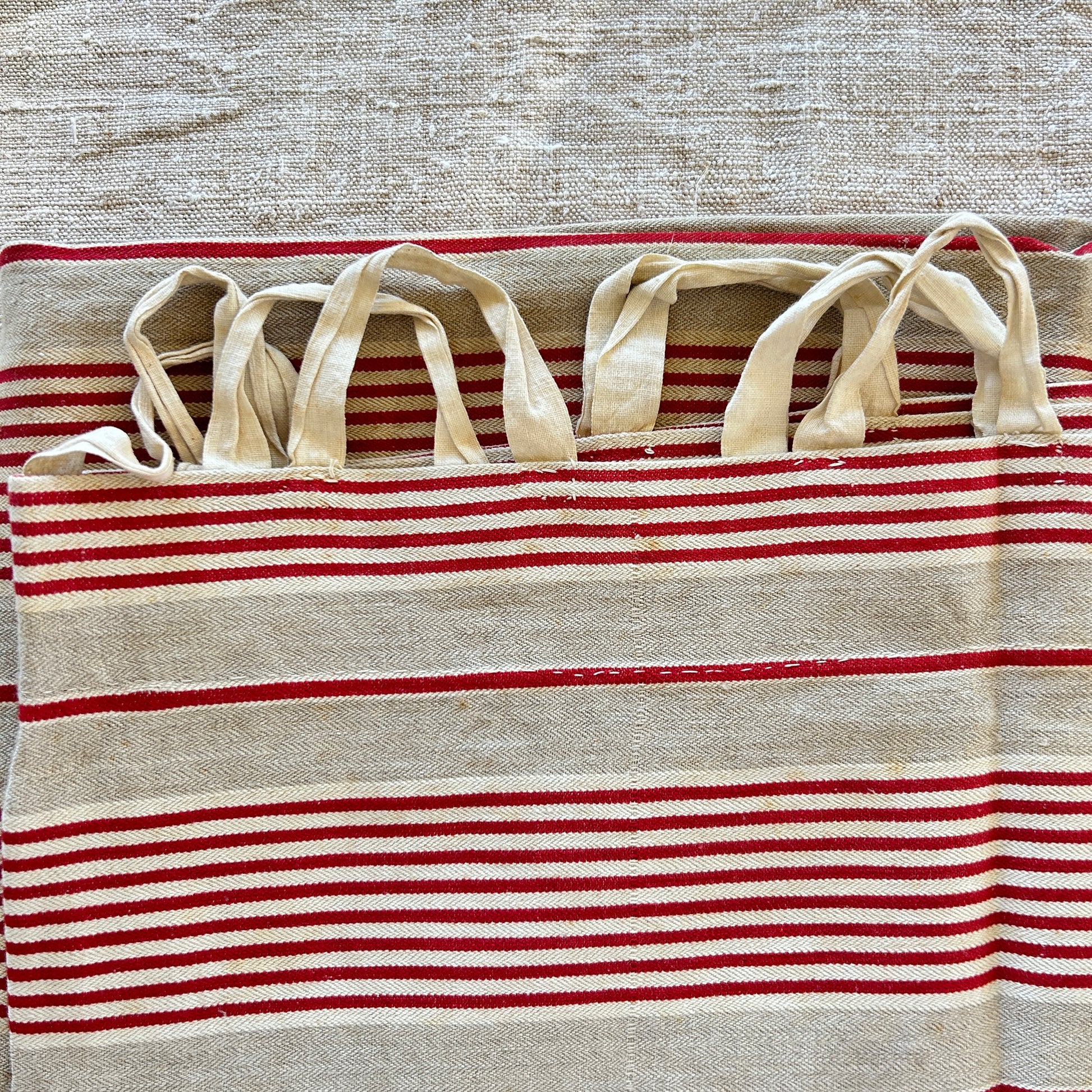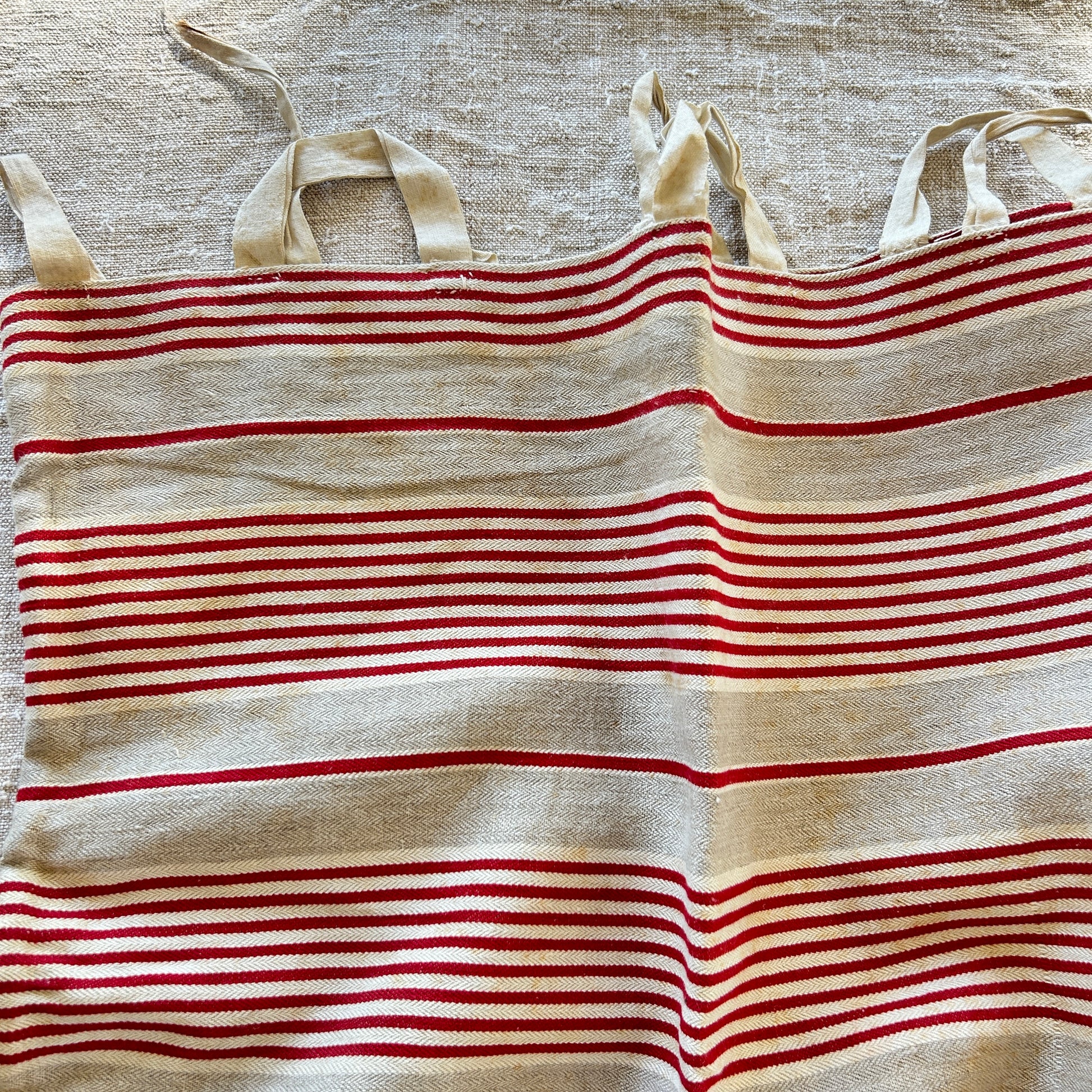 An early piece of red and tan linen ticking that has been hand-sewn into a sack? I'm not exactly sure what this would have been used for - but it is charming - and I imagine it might have held wool or something very light?