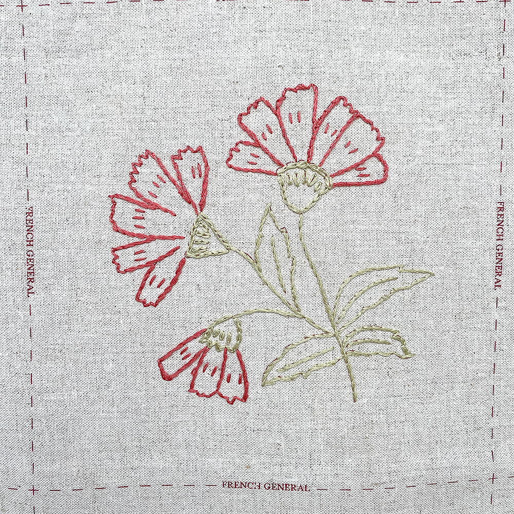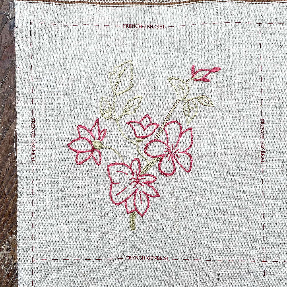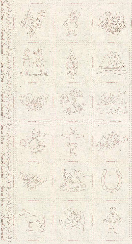 Our new Joie de Vivre Broderie Panel is printed in red on the natural colored Mochi Linen - a beautiful easy base to stitch on. Cut these blocks out and make up a sweet baby quilt or a larger quilt using a Joie de Vivre Jelly Roll.