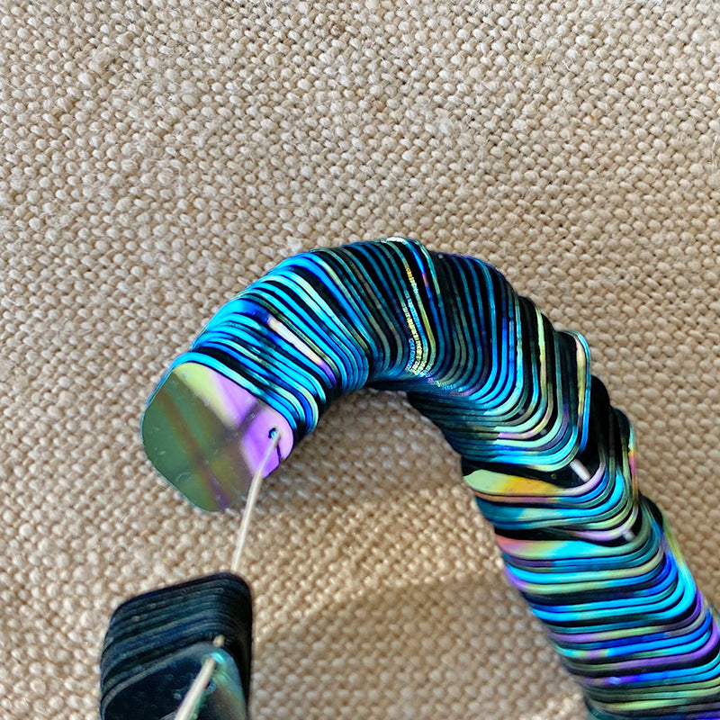 Black Aurora Borealis fan sequin with hole at top.