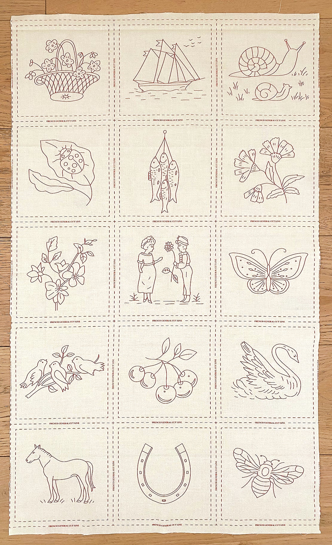 Red Work Embroidery Panel