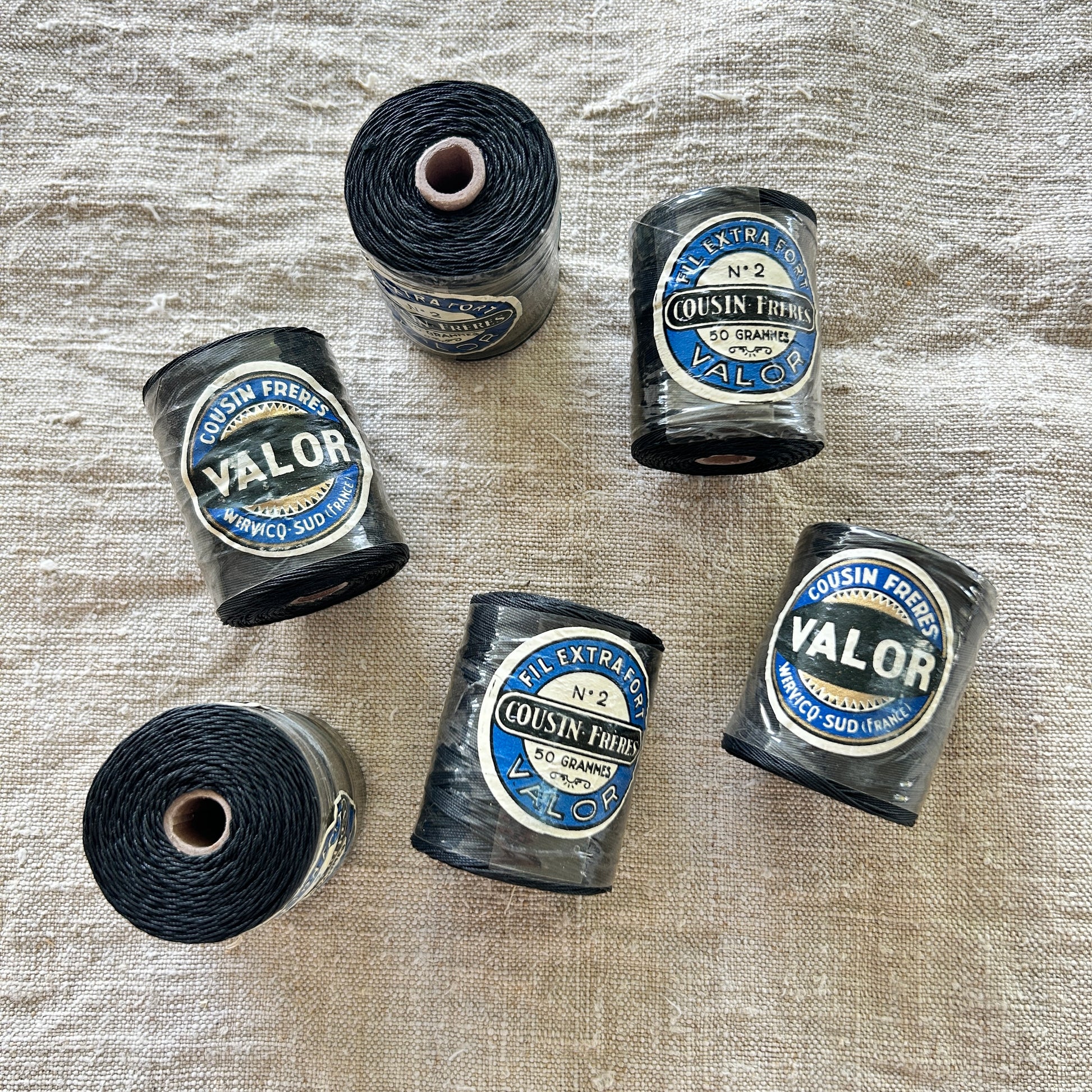 A beautiful old spool of black linen thread from the Cousin Freres Co in Southern France.